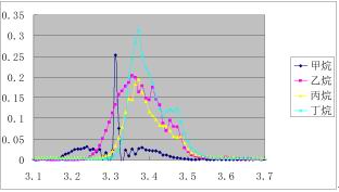 從上表可以看出,煤氣主要成分中CO、O2與背景氣N2的熱導(dǎo)系數(shù)相當(dāng),對(duì)H2的測量結(jié)果影響不大,但是CO2、CH4對(duì)H2測量影響明顯。通過理論分析及實(shí)驗(yàn)表明,如果氣體成分中含有CO2,會(huì)使H2的測量讀數(shù)偏低;如果氣體成分中含有CH4,會(huì)使H2的測量讀數(shù)偏高。因此為了得到準(zhǔn)確的H2含量,應(yīng)對(duì)H2濃度進(jìn)行CO2、CH4的濃度校正。此外由于熱導(dǎo)傳感器的基本原理是通過對(duì)氣體流動(dòng)帶走的熱量進(jìn)行換算,如果采用直接流通式的熱導(dǎo)檢測池,很難控制氣流,流量大小直接影響H2的讀數(shù),為了得到*的煤氣熱值,煤氣分析儀還必須實(shí)現(xiàn)CH4、CnHm無干擾測試。大多數(shù)紅外分析儀僅以CH4為測試對(duì)象,折合成碳?xì)浠衔锟偭坑?jì)算熱值。煤氣成份中,特別是焦?fàn)t煤氣,除甲烷外,還含有其他碳?xì)浠衔锏瘸煞帧8鶕?jù)紅外吸收原理,如圖1,乙烷等碳?xì)浠衔镌诩淄榈奶卣鞑ㄩL3.3um左右有明顯吸收干擾。當(dāng)煤氣中其他碳?xì)浠衔锖枯^大時(shí),CH4的測試值會(huì)明顯偏大,導(dǎo)致熱值測試不準(zhǔn),其熱值測試值也無法保證精度。