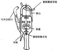 鉗形交流電流表實質上是由一只電流互感器和一只整流系儀表所組成,被測量的載流導線相當于電流互感器的原繞組,在鐵芯上的是電流互感器的副邊繞組,副邊繞組與整流系儀表接通。根據電流互感器原、副邊繞組間一定的變化比例關系,整流系儀表的便可以顯示出被測量線路的電流值。